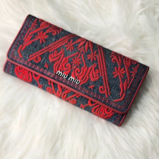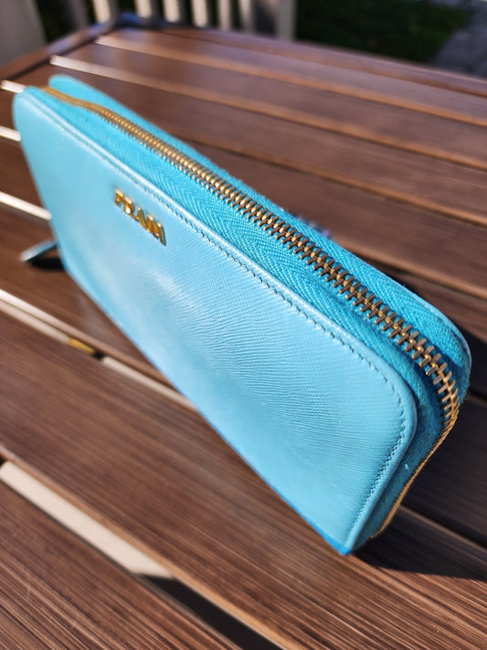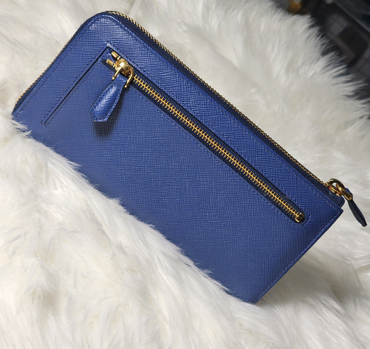 Prada Blue Saffiano Peonia Fiocco Bow Zip Around Wallet