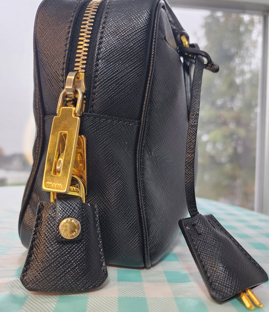 Prada Bauletto Saffiano Mini Black Leather Bag