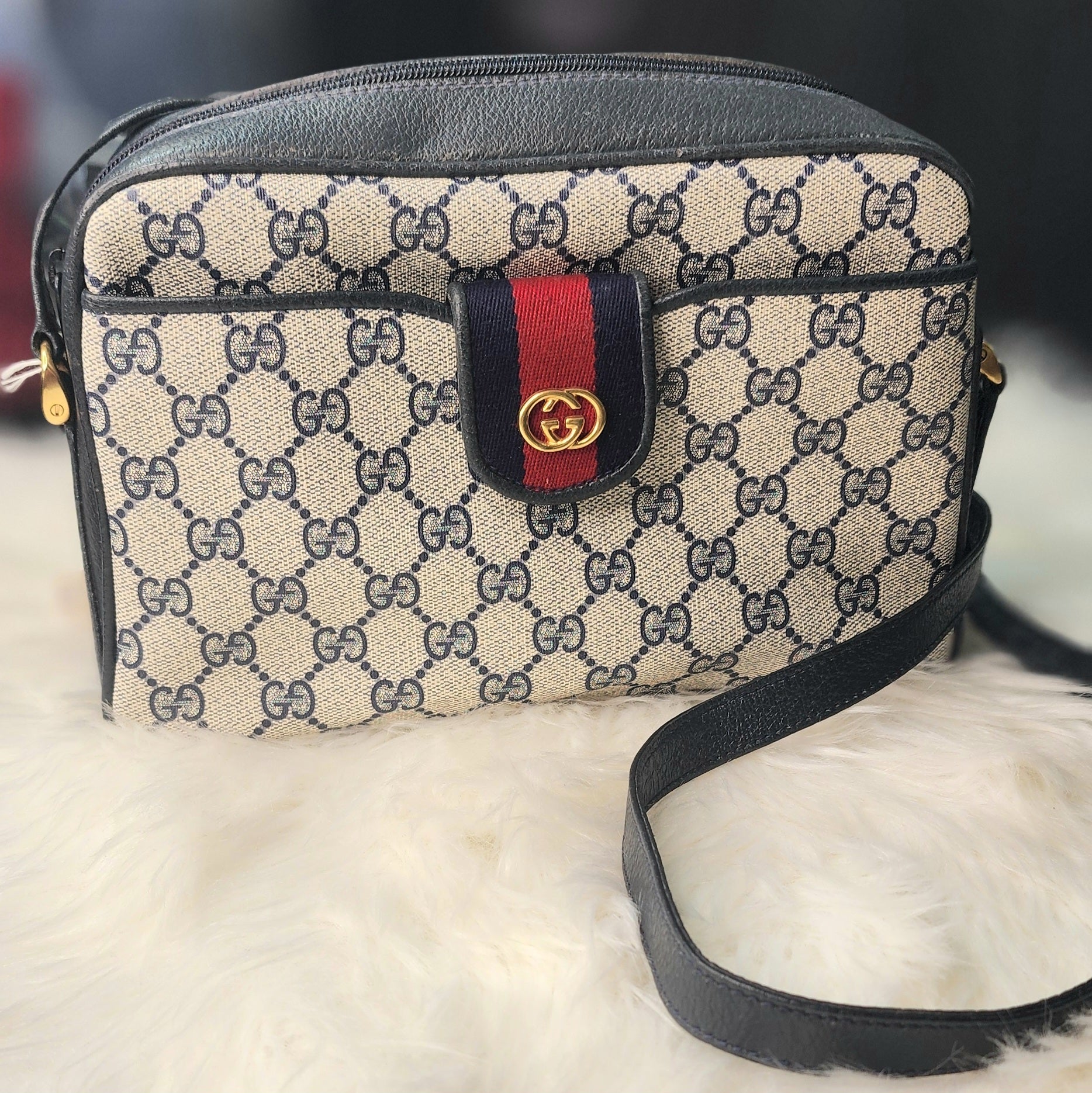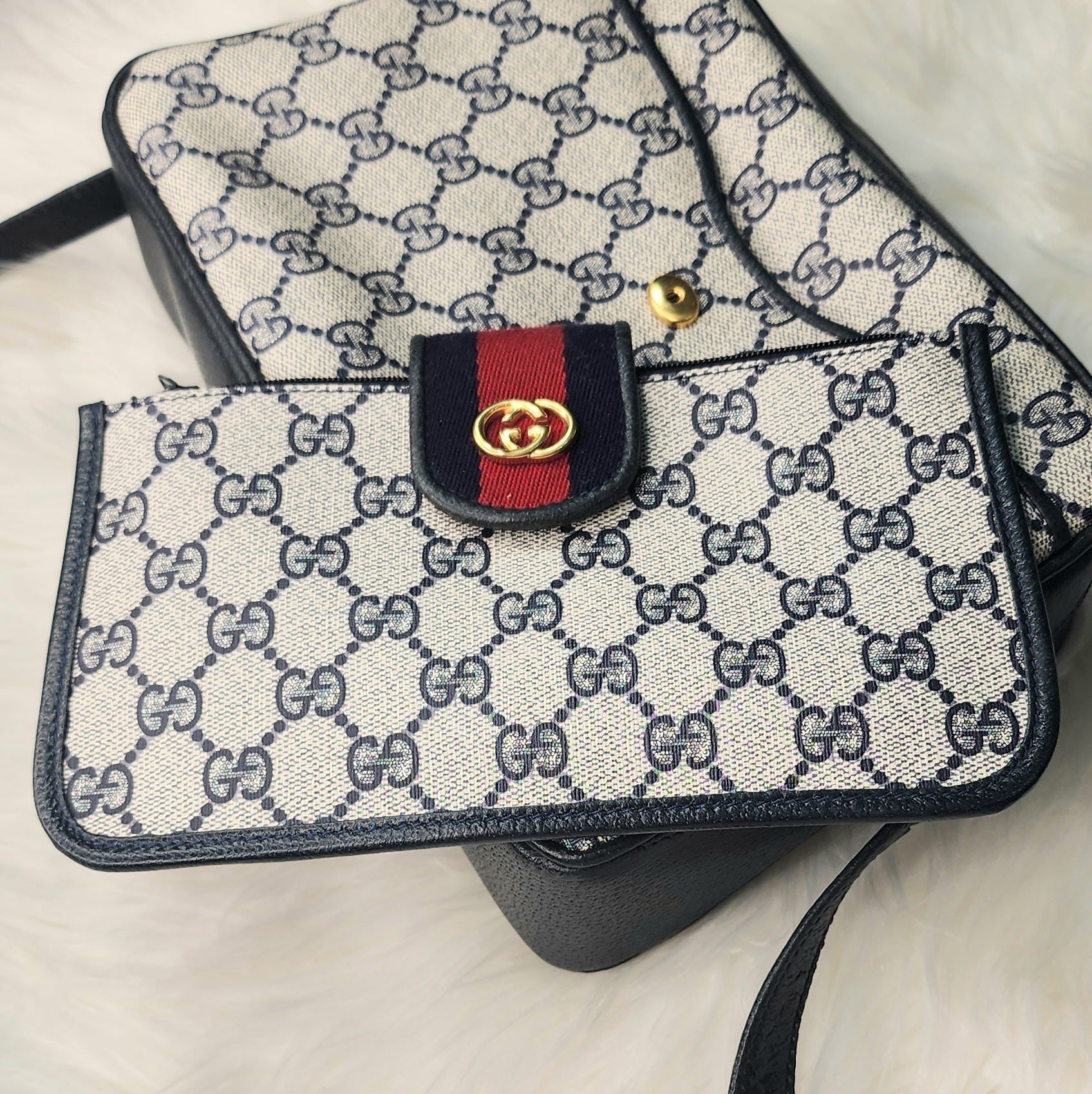 Gucci Navy Sherry Line Camera Sling Bag