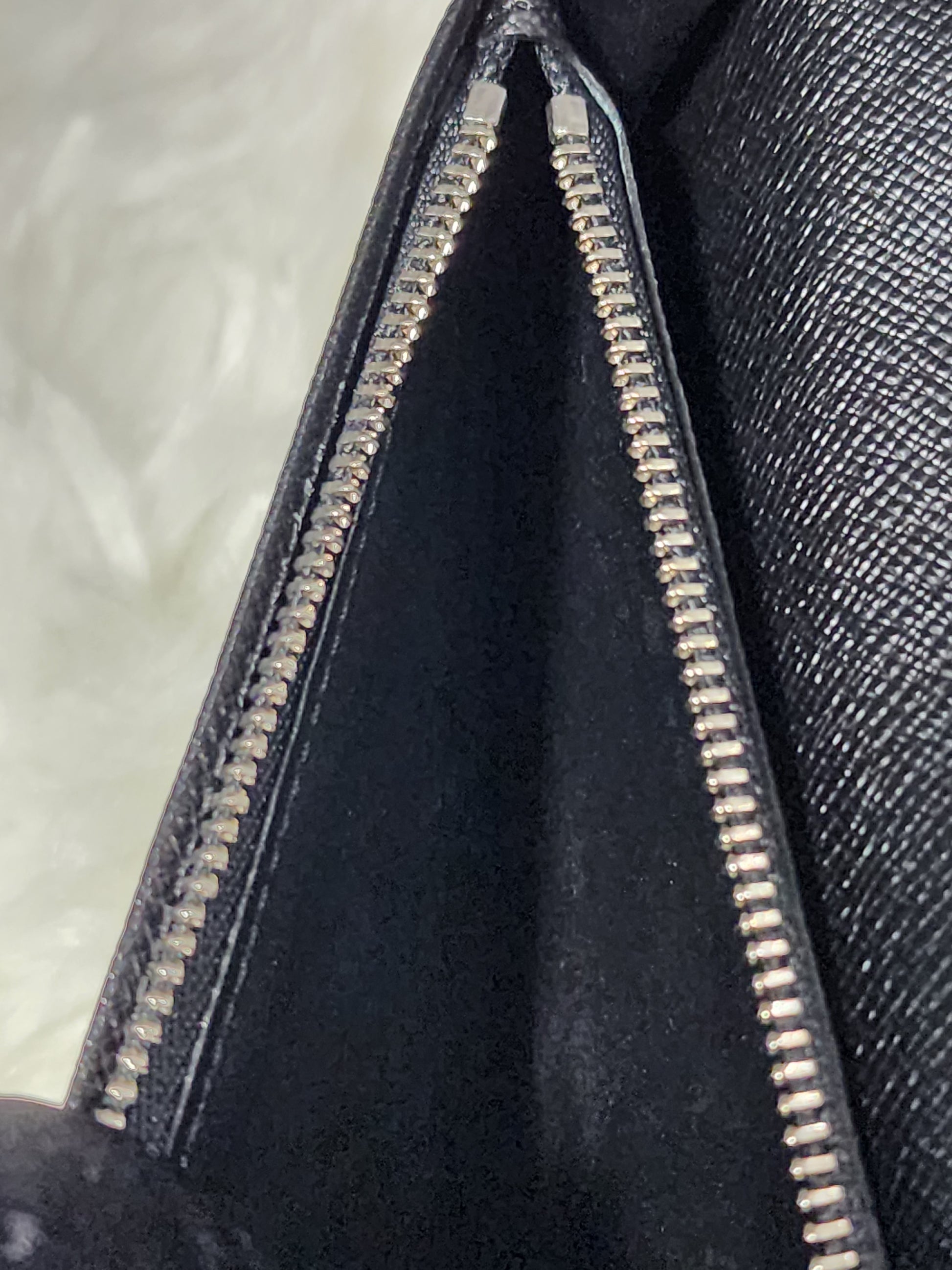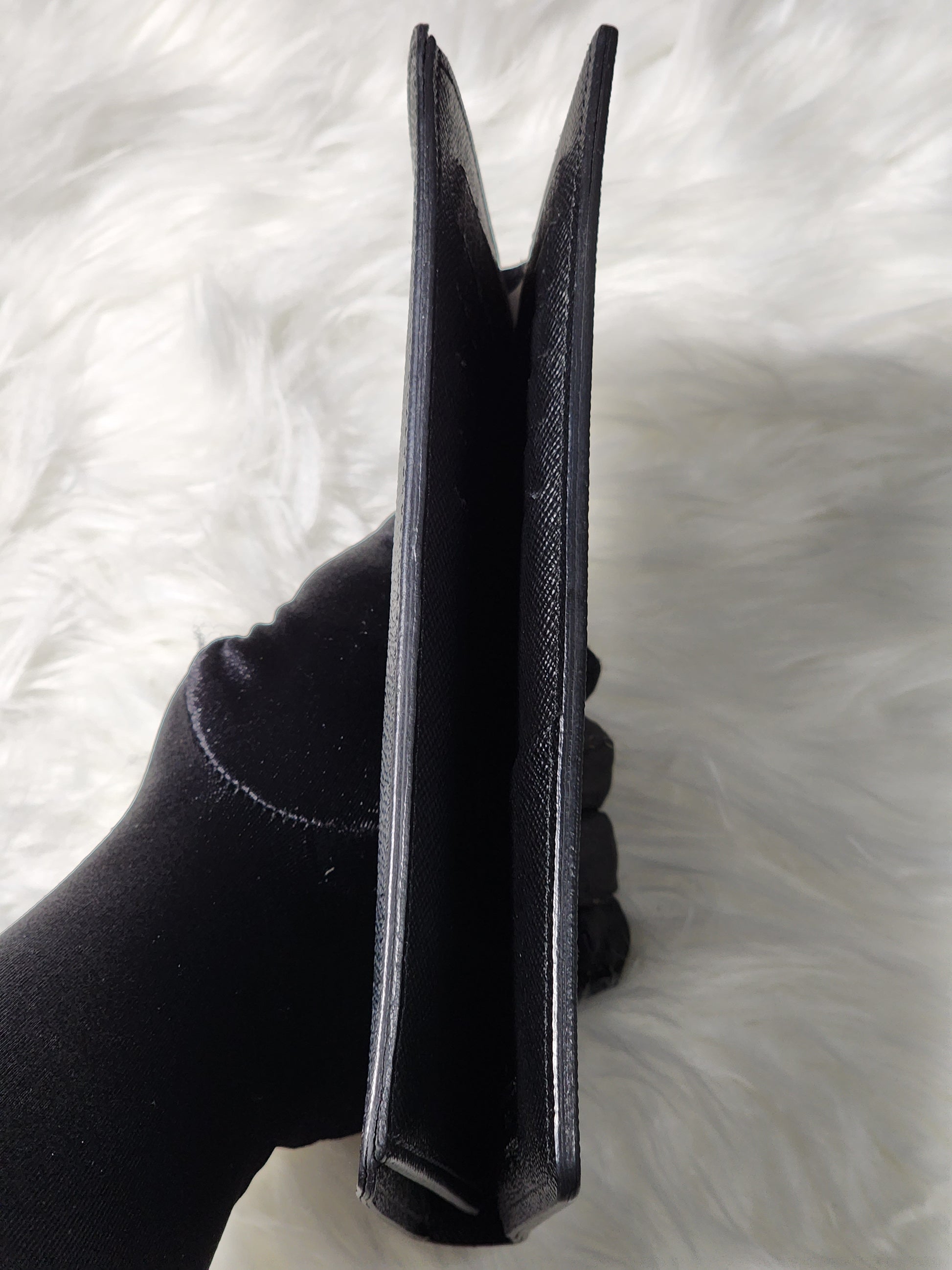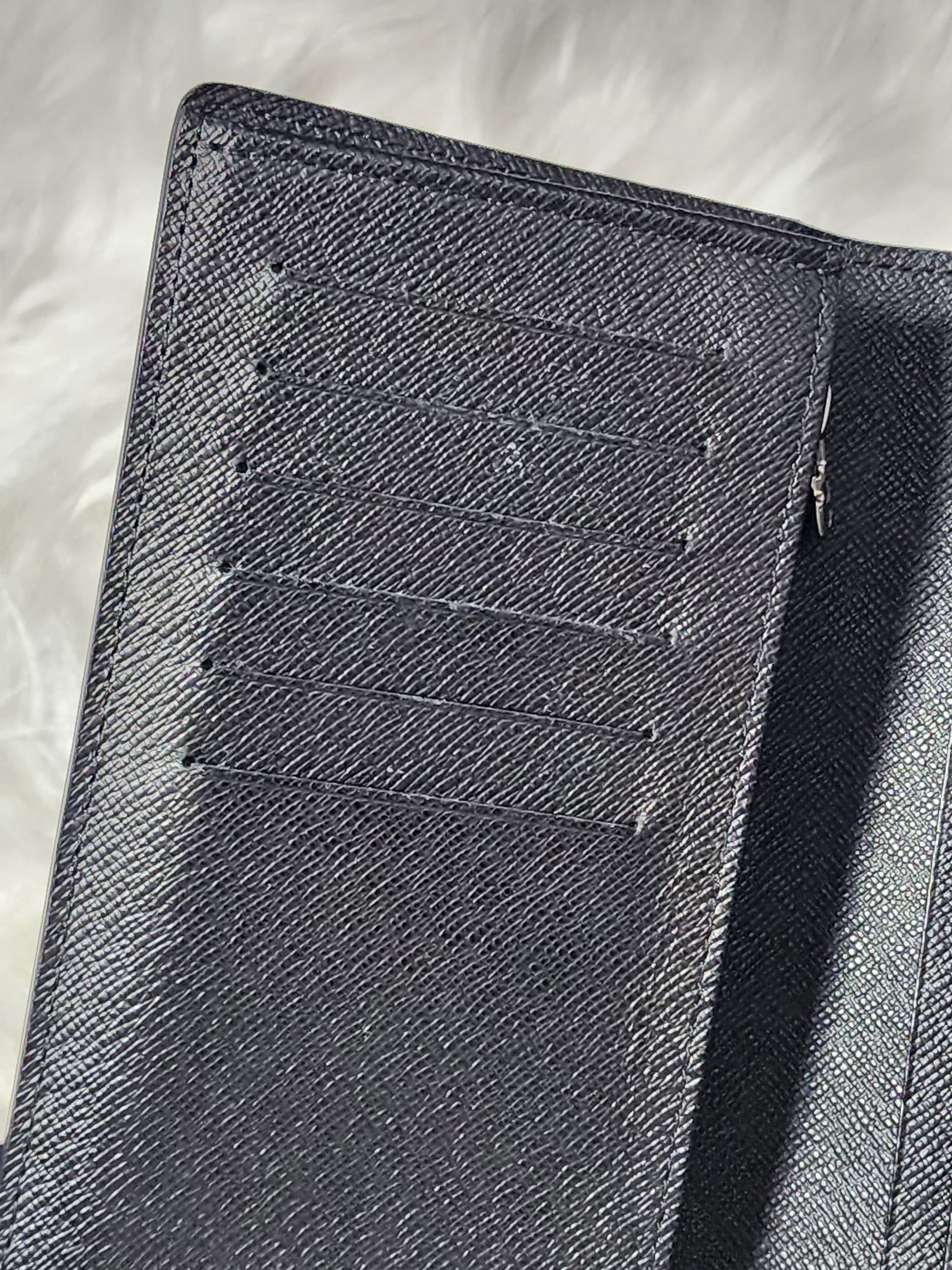 Has 13 cards slots, 5 bill compartments and one zippered compartment