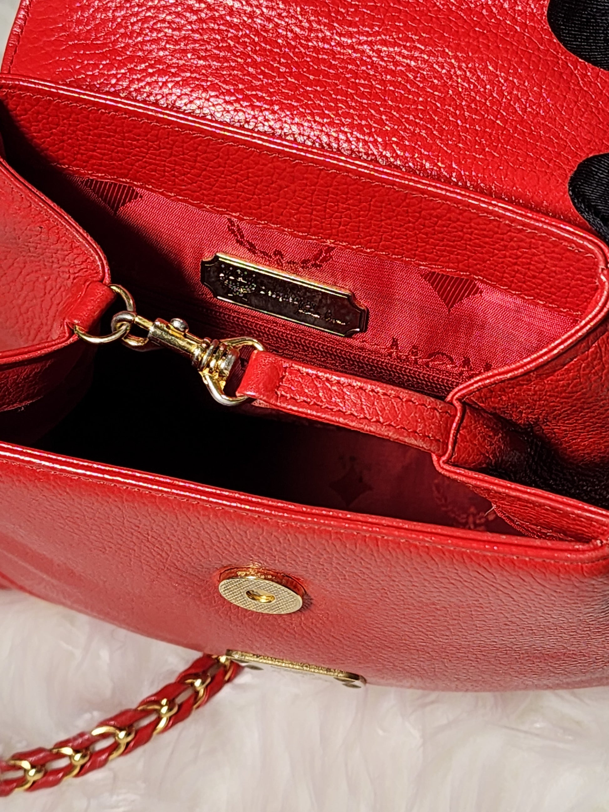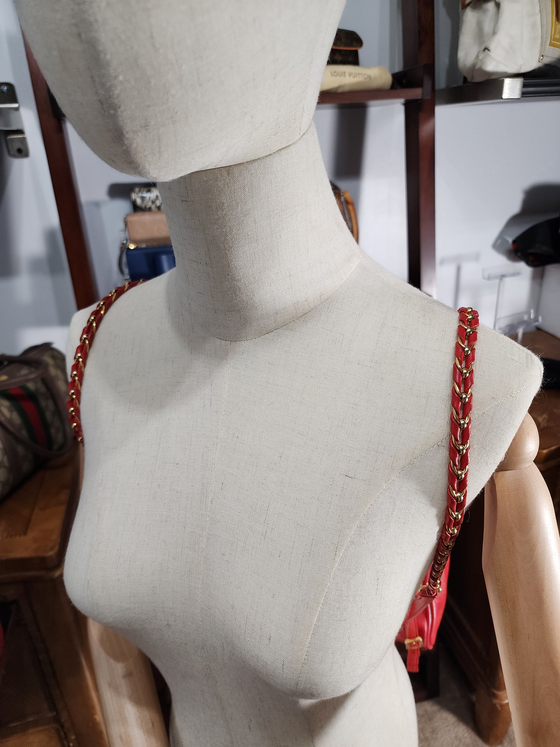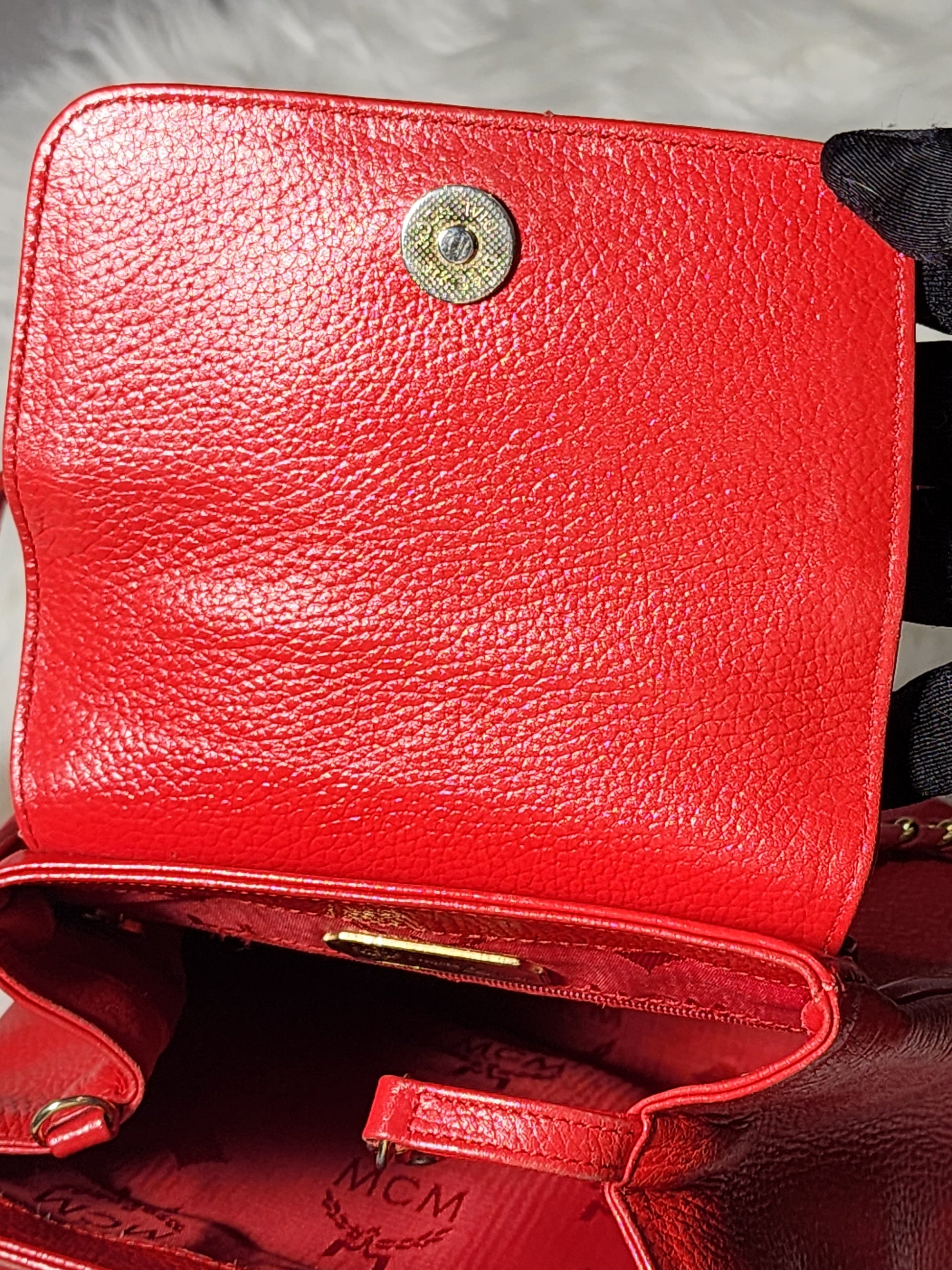 MCM Vintage Red Leather Braided Chain Small Backpack